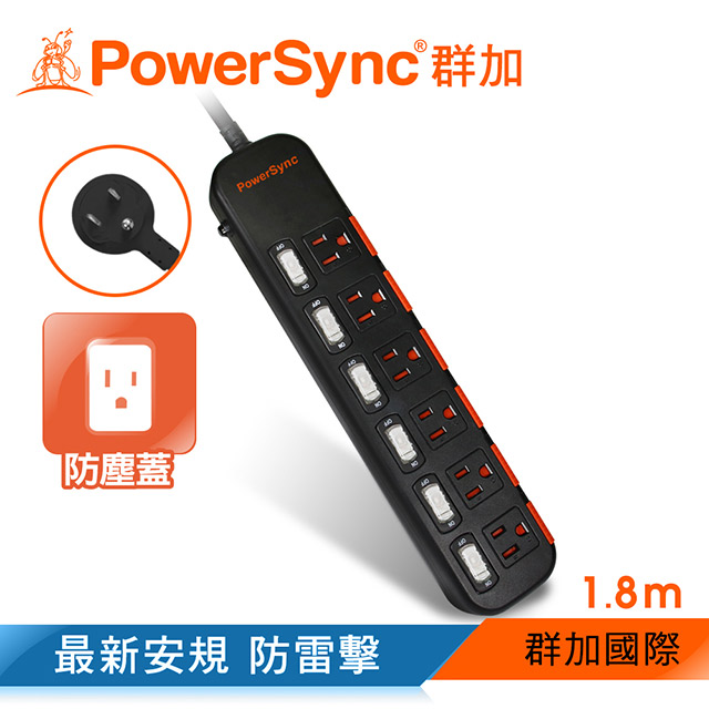 ● 品名:6開6插滑蓋防塵防雷擊延長線 ● 額定容量:15安培/125V/最大使用功率1650W ● 插座:3Pin插頭/三孔-6個接地插座/6個電源開關