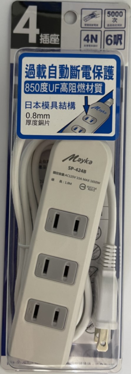 ◆商品名稱:明家家用延長線4(3+1)插座1.8M