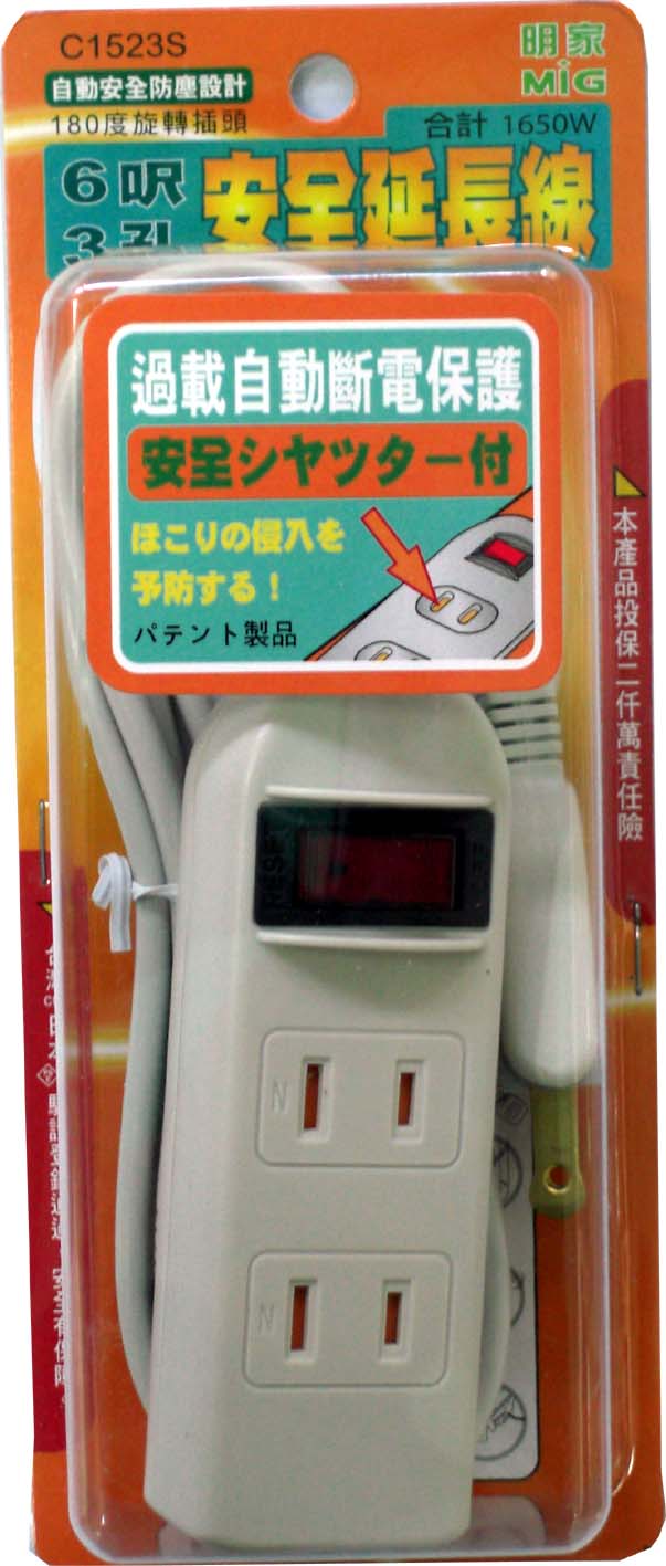 ◆明家 型號 : C1523S-6呎 2P(插孔) x 3插座
