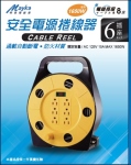 LSP612S-8 / 名稱:明家 1開關6孔電源捲線器輪座 8M